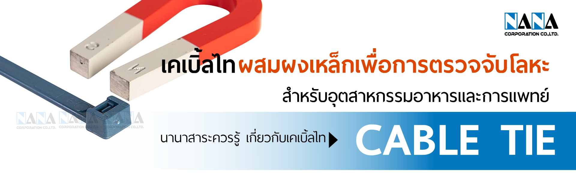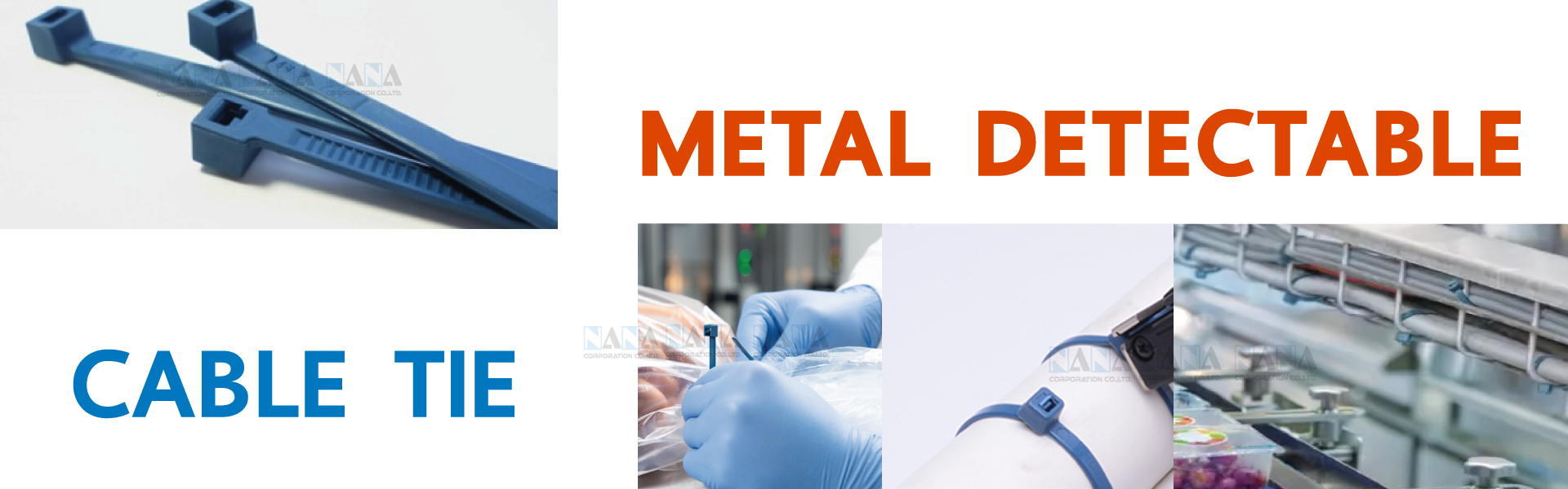 สายรัดเคเบิ้ลไทร์ตรวจจับโลหะหรือ Detectable cable ties ถูกออกแบบให้มีส่วนประกอบพิเศษ ผสมไปในพลาสติกที่ขึ้นรูปเป็นเคเบิ้ลไทร์ และสามารถตรวจจับได้ด้วยเครื่องตรวจจับโลหะ ช่วยลดความเสี่ยงในการปลอมปน ของอุปกรณ์ไปกับผลิตภัณฑ์ เพื่อสร้างความมั่นใจให้กับผู้ผลิต และยังเป็นอุปกรณ์ที่ออกแบบมาให้รองรับกับมาตรฐานสากลในอุตสาหกรรมอาหารและยา