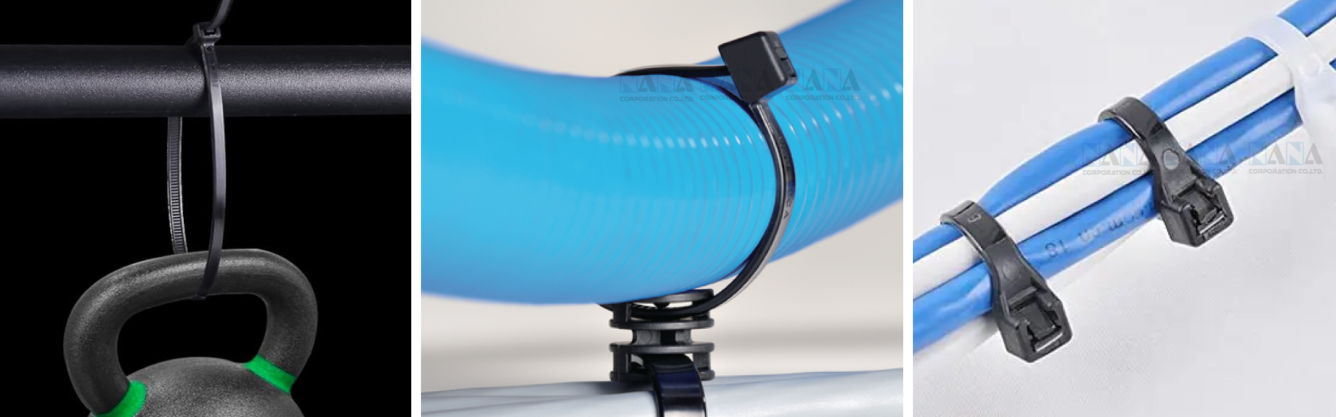 Cable Tie โดยทั่วไปเคเบิ้ลไทร์ คือ สายรัดที่ผลิตจากวัสดุพอลิเมอร์ที่เรียกว่า พอลิเอไมด์ (ไนลอน 6/6) ความกว้าง ความยาว และพื้นที่ส่วนหัวใช้กลไกของเฟืองล้อหยัก ซึ่งจะช่วยให้สามารถล็อกสิ่งของต่าง ๆ ที่จำเป็นต้อง “มัดรวม” เข้าด้วยกันได้ ไนลอนมีคุณสมบัติที่โดดเด่นโดยเฉลี่ยเท่า ๆ กันทั้งในเรื่องของความแข็งแรง ความแข็ง ช่วงอุณหภูมิในการใช้งาน และมีความเหนียวในระดับสูง เคเบิ้ลไทร์ไนลอนมีความทนทานเป็นพิเศษต่อการกระทบกระแทกซ้ำ ๆ มีค่าสัมประสิทธิ์แรงเสียดทานต่ำ และความทนทานต่อการสึกกร่อนหรือการขัดถูได้ดีเยี่ยม ซึ่งมีผลต่อความทนทานต่อแรงดึงของเคเบิลไทเป็นอย่างมาก จึงต้องคำนึงวัสดุและประเภทของไนลอนที่นำมาใช้ผลิต