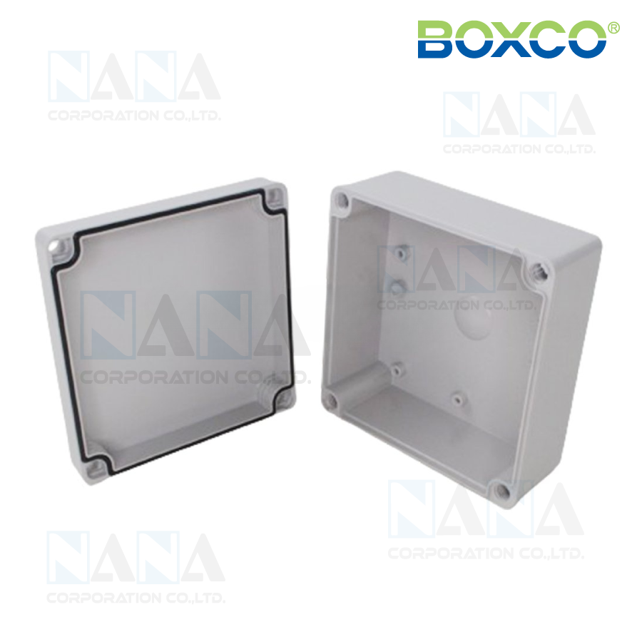 กล่องพลาสติกกันน้ำ IP66/67 แบบสกรู 4 มุม หล่อขึ้นเชื่อมต่อกับฐาน แบบบานเลื่อน 4 ด้าน แข็งแรงทนต่อแรงกระแทก ขนาด (150x150x75 mm)