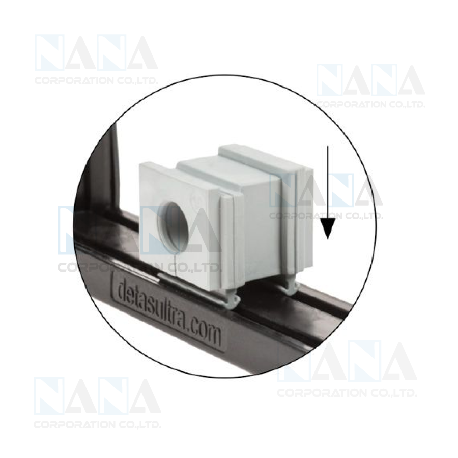 The system patented by Detas allows the grommets (inserts) to be installed in two ways: snapon or slideon.