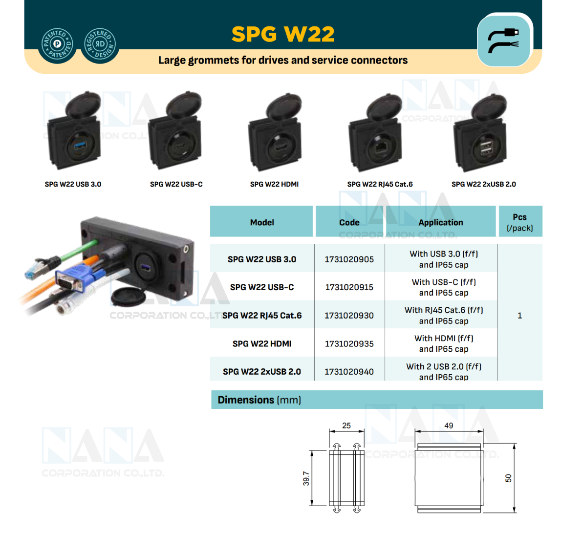 SPG W22 Large grommets for mounting drive connectors and service sockets
