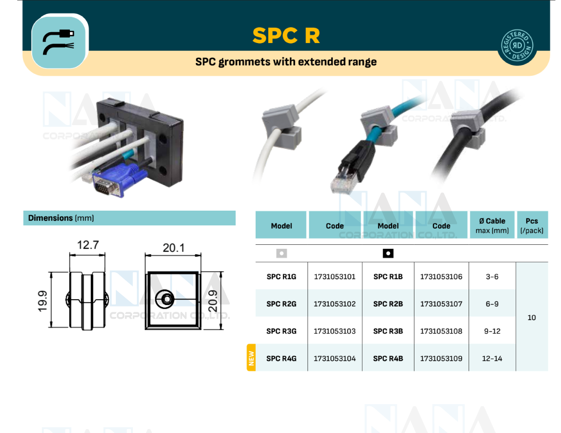 Only three models cover the diameter range from 3 to 12 mm (R1...R3). The use of SPC R grommets allows the improvement of the stock management by making cable management more flexible.