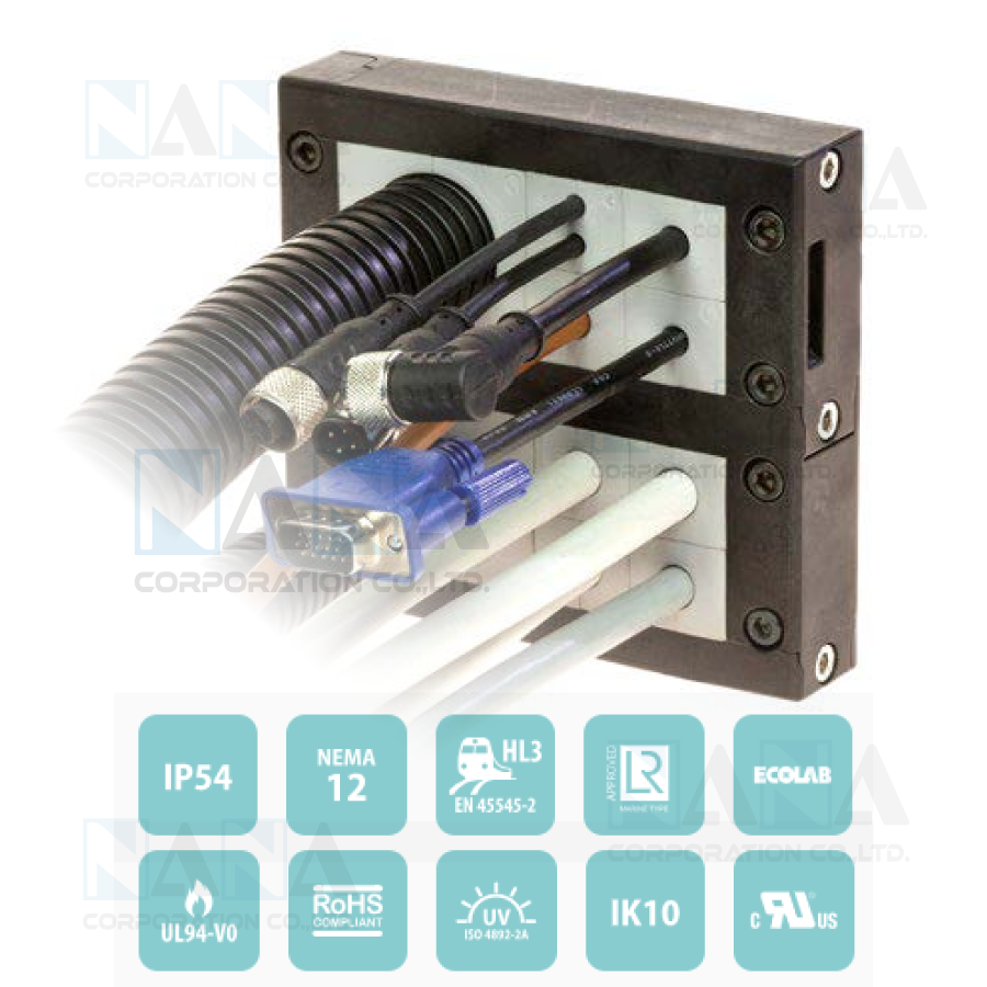 The DES 16MX splittable frames family is a modular solution for installations where a big quantity of cables need to be routed through electrical cabinets walls or machines.