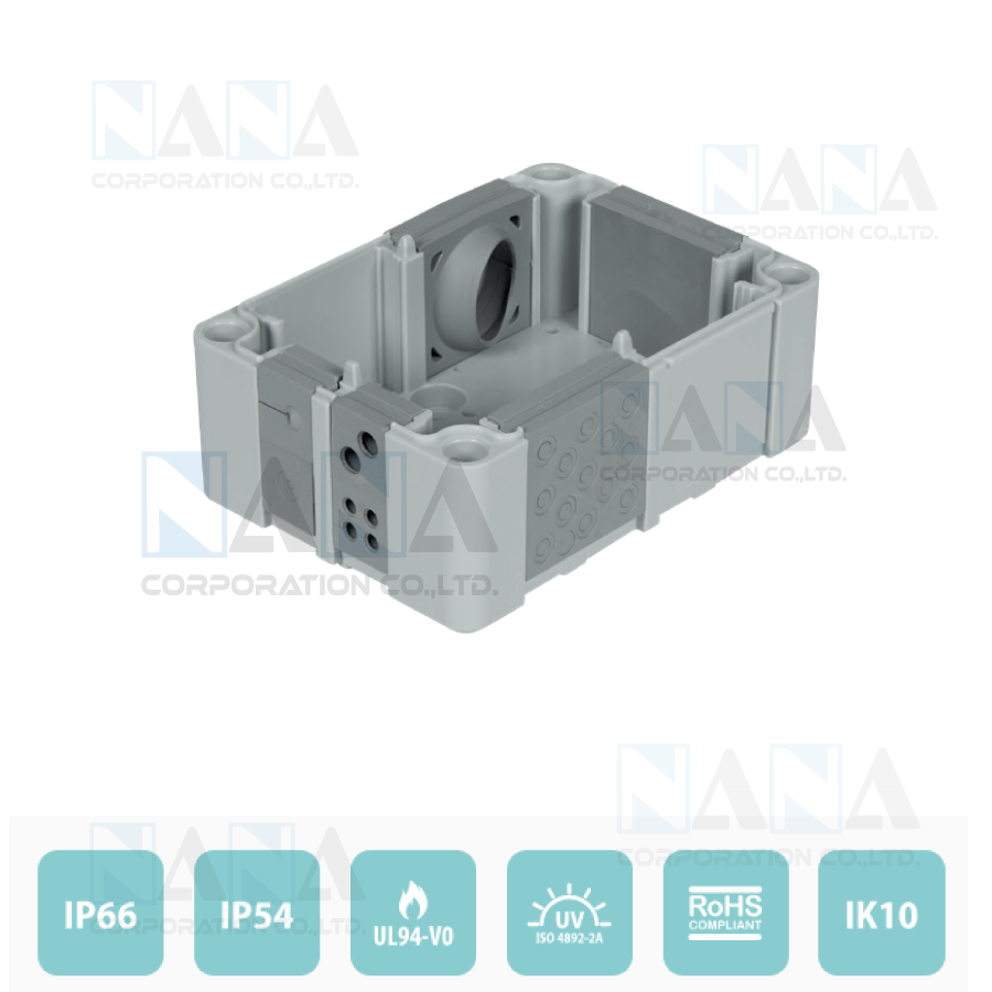 It uses removable walls and grommets that can be opened or punched, offering new wiring possibilities over traditional cable glands.