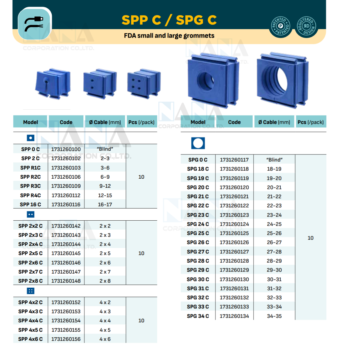 SPG C Extended range grommets with FDA pproved material