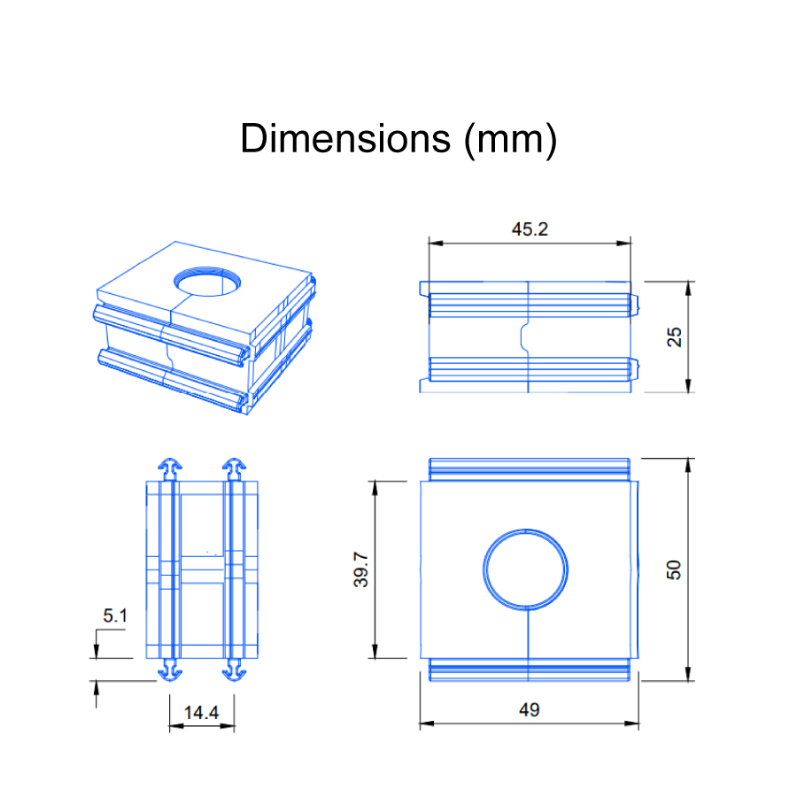 The SPG C grommets allow cables with diameter from 18 to 35 mm to be routed inside the DES 24 CLEAN series divisible frame.