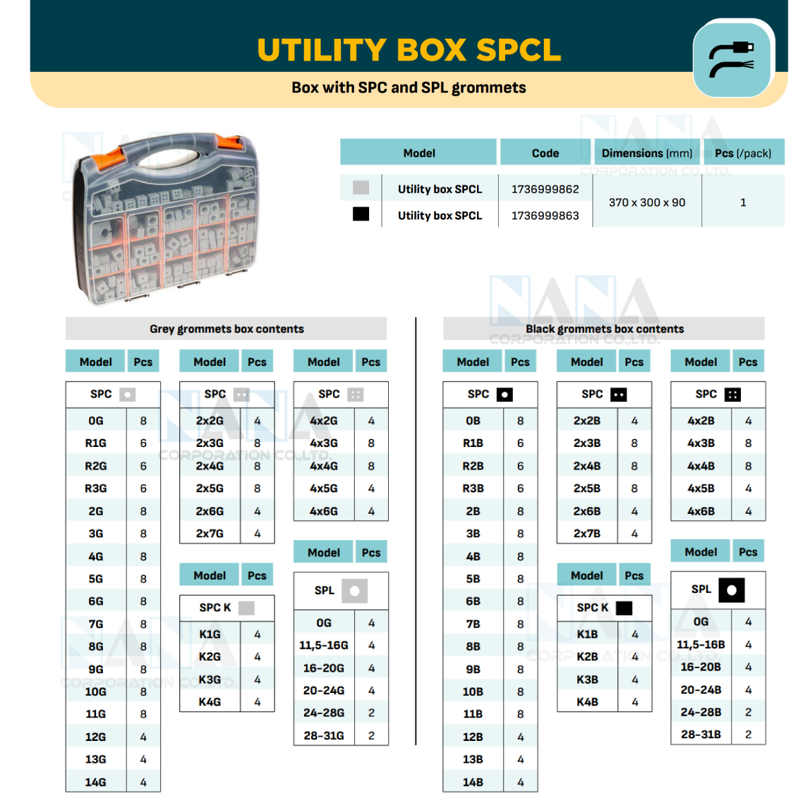Box with all SPC and SPL grommet models
